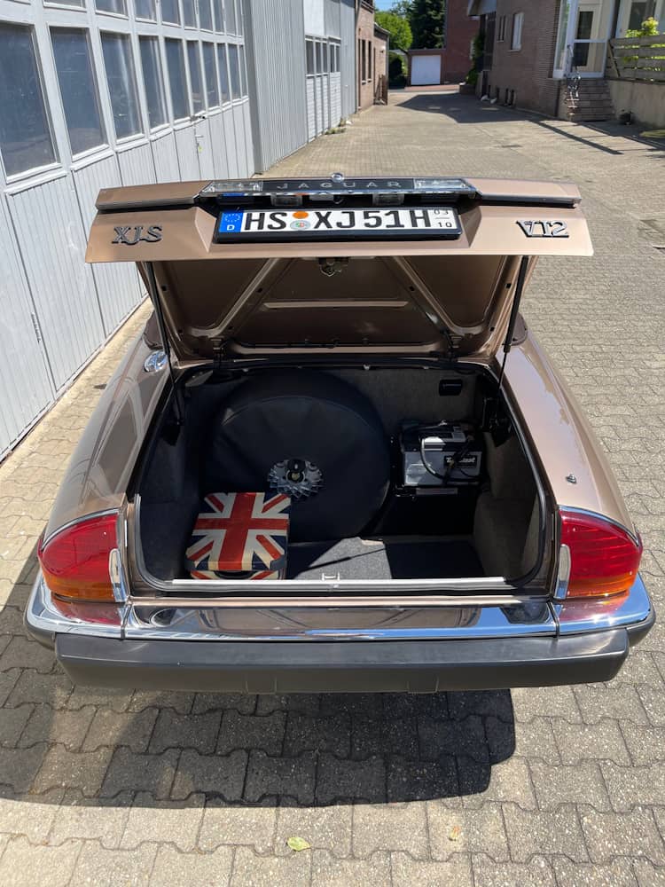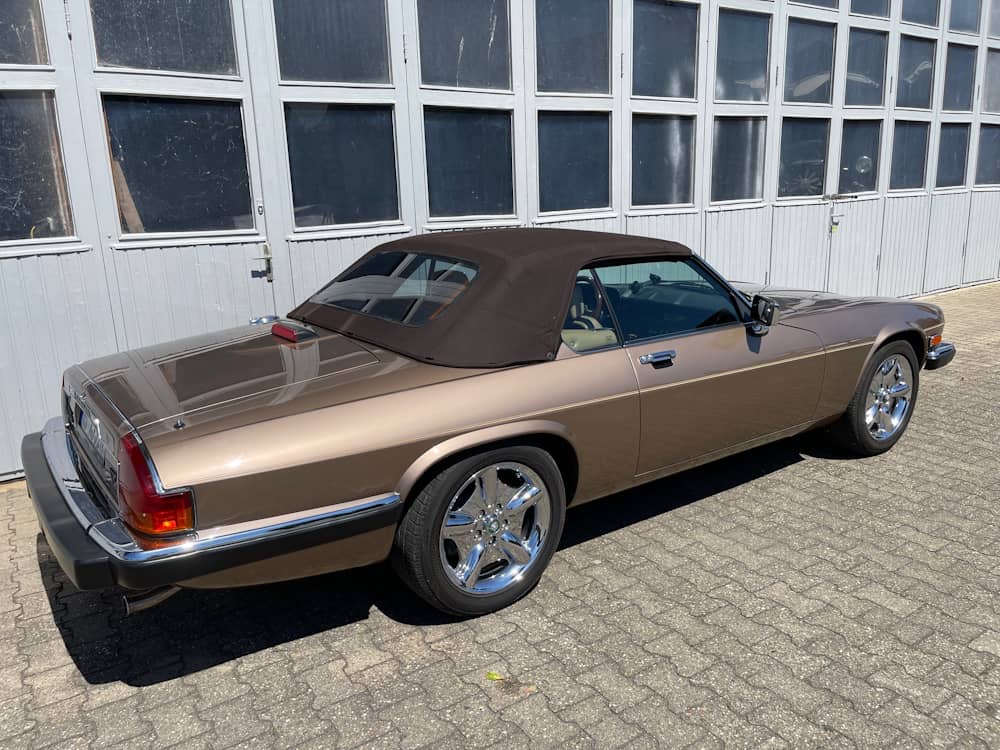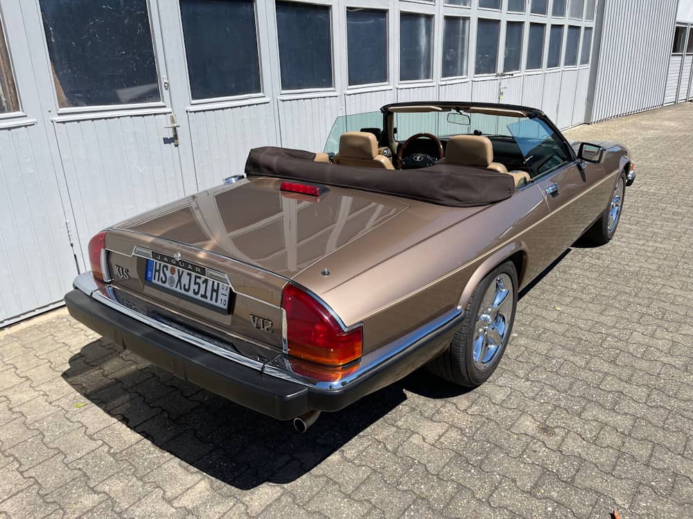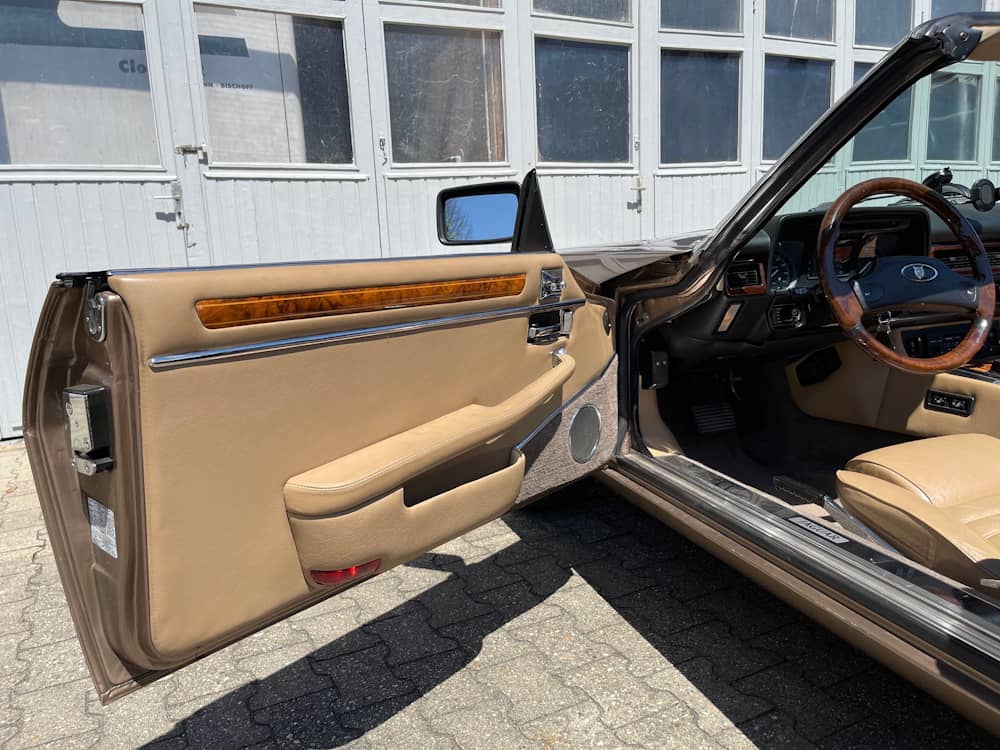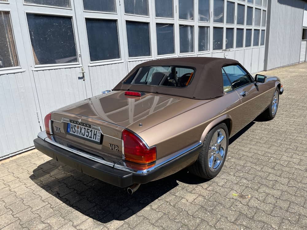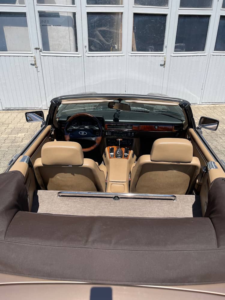 Der hier angebotene Jaguar XJ-S zeichnet sich durch eine niedrige Laufleistung und seine annähernd komplett original erhaltene Lackierung in nahezu makellosen Zustand aus. Die Mechnik ist frei von Fehlern, abgesehen vom Tempomat, der nicht funktioniert. Das Verdeck befindet sich in einem einwandfreien Zustand, öffnet und schließt auf Knopfdruck und kann mit einer mitgelieferten Persenning im geöffneten Zustand abgedeckt werden. Im Innenraum finden sich neben hochwertigem Leder stilvolle Holzapplikationen. Das lederbezogene Gestühl sieht nicht nur gemütlich aus, es lassen sich selbst lange Strecken damit ermüdungsfrei zurücklegen.